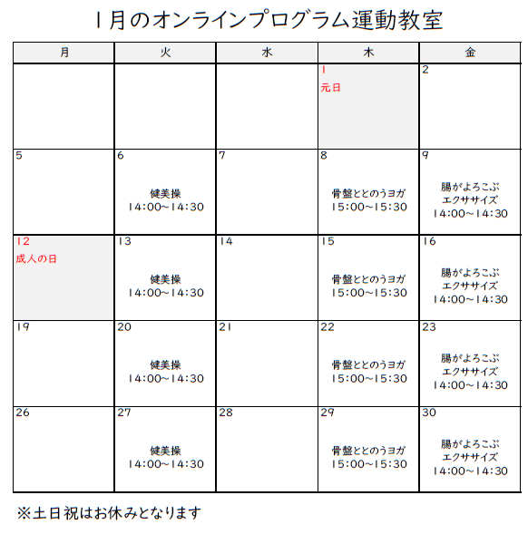 参加者のご要望によりオンラインプログラム運動教室(日中のみ)を3月まで延長いたします。